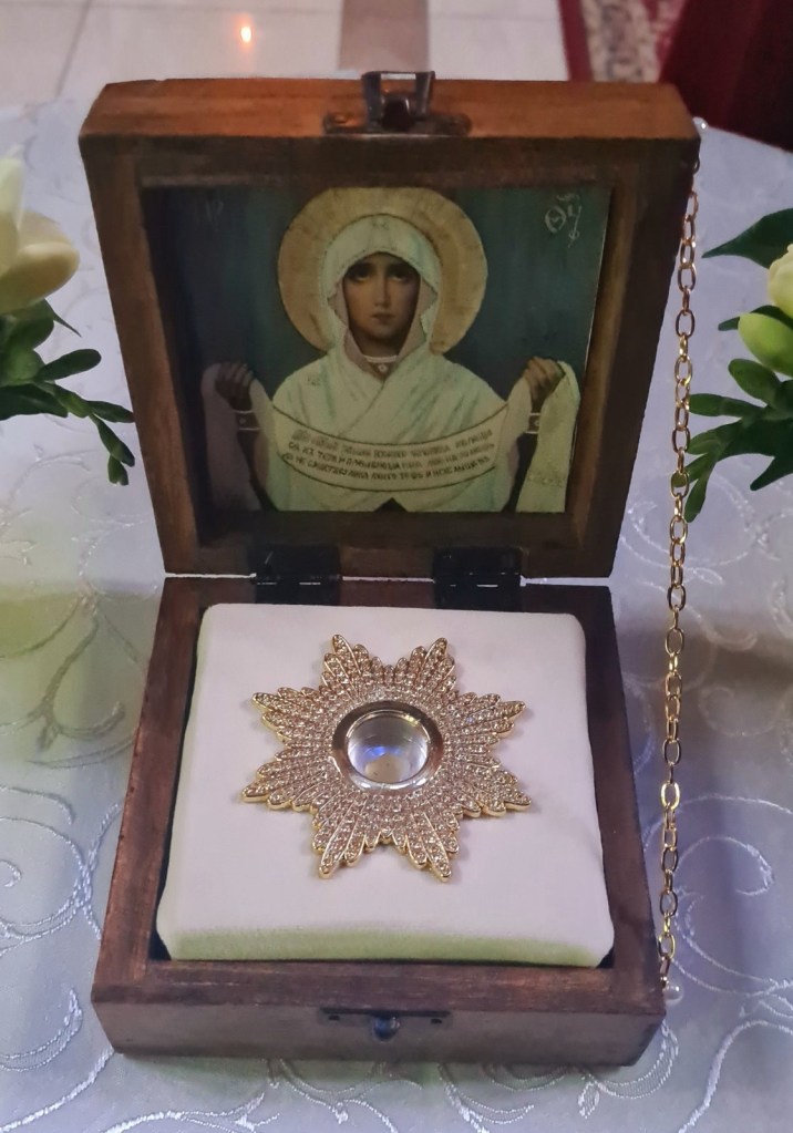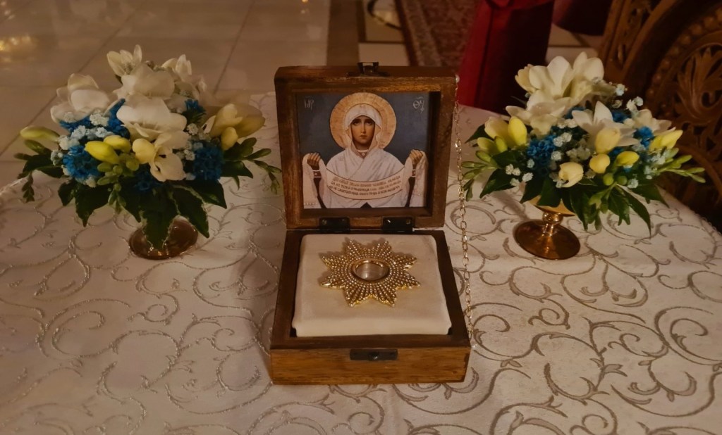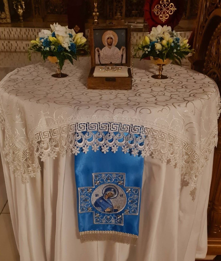 Присутни верници су имали прилику да се поклоне делу појаса Пресвете Богородице, који се чува у нашем манастиру.