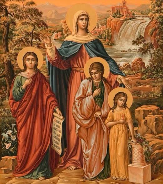 За царовања злочестивог цара римског Адријана[1] живљаше у Риму удовица, родом Италијанка, по имену Софија, што у преводу значи мудрост. Она беше хришћанка и, сходно имену свом, она мудро у вери хришћанској провођаше живот по оној мудрости коју хвали апостол Јаков, говорећи: Мудрост која је одозго најпре је чиста, потом мирна кротка, покорна, пуна милости и добрих плодова (Јак. 3, 17). Ова мудра Софија, док живљаше у чесном браку, роди три кћери којима надену имена према трима хришћанским врлинама: прву назва Вера, другу Нада, трећу Љубав. А и шта је могла родити хришћанска мудрост, ако не богоугодне врлине? Ускоро по рођењу треће кћери Софија обудове. Као удова, она живљаше побожно угађајући Богу молитвом, постом и милостињом; а своје кћери васпитаваше онако како то може мудра мати: да живе по хришћанским врлинама, чија имена ношаху.